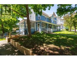 Step back in time with this breathtaking Queen Anne-style home, circa 1898, proudly known as one of the most photographed properties in the area. Featuring a distinctive corner entry, this architectural gem offers 4 bedrooms, 2.5 baths, and three spacious living areas designed for both comfort and functionality. The top floor provides a flexible space, ideal for a library, playroom, or recreational area for the kids. Rich in character and charm, the home showcases stunning hardwood floors, tin ceilings, original woodwork, stained glass accents, and a grand staircase that highlights its historic beauty. Numerous updates have been completed over the years, including windows, insulation, roofing, countertops, furnace, heat pumps, garage doors, paved driveway, and extensive exterior improvements. Enjoy the convenience of main-floor laundry and a second-floor bedroom with its own ensuite, perfect for guests or potential Airbnb use. Relax in the three-season sunroom while watching kids or pets play safely in the fenced yard, or unwind on the wrap-around verandah, perfect for barbecuing and taking in the charm of the neighbourhood. The carriage house offers a functional garage space with room for tools, a workshop, and a loft ideal for storage or a play area. Located close to unique shops, essential services, parks, playgrounds, the Annapolis River docks, hockey and curling rinks, and a public pool, this property offers the perfect blend of historic elegance and modern-day convenience (id:32591)